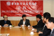 The Under Secretary for Constitutional and Mainland Affairs, Miss Adeline Wong, met with the representatives of the H.K.N.T. Commercial & Industrial General Association this (December 15) afternoon to listen to their views on the methods for selecting the Chief Executive and for forming the Legislative Council in 2012. Photo shows Miss Wong (second from left) meeting the representatives.