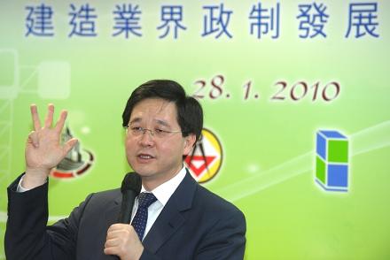 The Secretary for Constitutional and Mainland Affairs, Mr Stephen Lam, attended the forum organised by the Hong Kong Construction Association this (January 28) afternoon to listen to the views of participants on the methods for selecting the Chief Executive and for forming the Legislative Council in 2012. Photo shows Mr Lam and the Secretary for Development, Mrs Carrie Lam (third left), at the seminar.