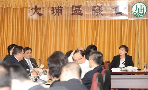 The Under Secretary for Constitutional and Mainland Affairs, Miss Adeline Wong, attended a Tai Po District Council meeting this morning (May 4) to discuss the Package of Proposals for the Methods for Selecting the Chief Executive and for Forming the Legislative Council in 2012.