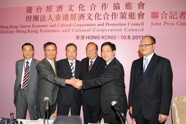 The Hong Kong-Taiwan Economic and Cultural Co-operation and Promotion Council (ECCPC) and the Taiwan-Hong Kong Economic and Cultural Co-operation Council (THEC) held their second joint meeting in Hong Kong today (August 10). The meeting was co-chaired by the ECCPC Chairperson, Mr Charles Lee, and the THEC Chairman, Mr Lin Chen-kuo. The Financial Secretary, Mr John C Tsang, was the Guest Speaker at the beginning of the meeting in his capacity as the Honorary Chairperson of the ECCPC.