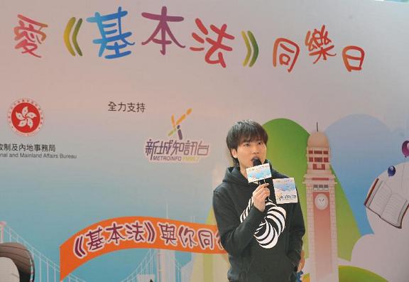 Singer Adason Lo conveys to the audience messages about the Basic Law.