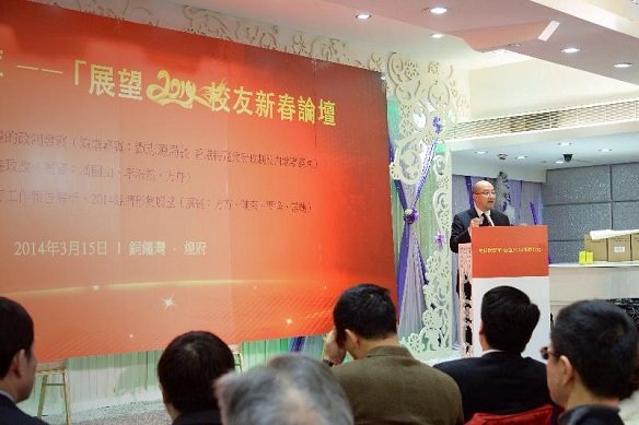 The Secretary for Constitutional and Mainland Affairs, Mr Raymond Tam, attended a forum organised by The Federation of Alumni Associations of Chinese Colleges and Universities in Hong Kong to exchange views with participants on the "Consultation Document on the Methods for Selecting the Chief Executive in 2017 and for Forming the Legislative Council in 2016" this afternoon (March 15). Photo shows Mr Tam addressing the forum.
