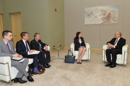 The Secretary for Constitutional and Mainland Affairs, Mr Raymond Tam (first right), met with the Premier of Queensland, Australia, Ms Annastacia Palaszczuk (second right), today (April 6) to exchange views on issues of common concern. Mr Tam said Hong Kong's dual advantages in "one country" and "two systems", its international outlook and its institutional strengths make it an ideal choice for Australian companies to establish their businesses. He added that they could also use Hong Kong as a platform to expand their business network in the Mainland and the rest of the world.