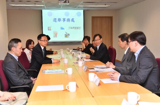 The Secretary for Constitutional and Mainland Affairs, Mr Patrick Nip (second left), today (July 27) visited the Registration and Electoral Office (REO). He met with colleagues of the REO to learn more about the department's work as well as the challenges and problems encountered in the course of their work.