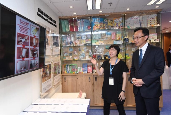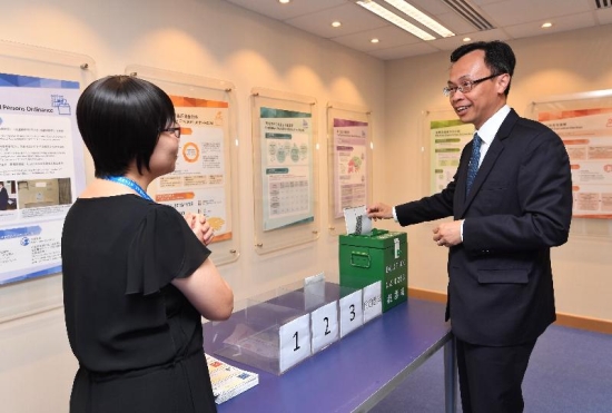 The Secretary for Constitutional and Mainland Affairs, Mr Patrick Nip, visits the display area of the Electoral Information Centre of the Registration and Electoral Office today (July 27).