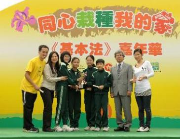 图示香港教育工作者联会黄楚標学校的代表今日(二月二十一日) 获颁「校际《基本法》摊位游戏设计比赛2008/2009」小学组「最佳摊位佈置奖」冠军奖项。