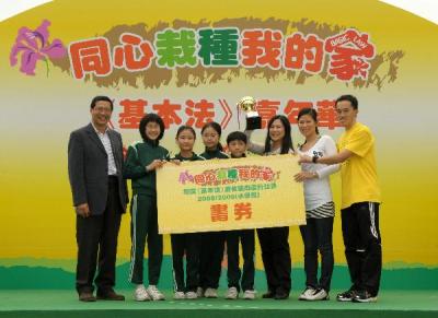 图示香港教育工作者联会黄楚標学校的代表今日(二月二十一日)获颁「校际《基本法》摊位游戏设计比赛2008/2009」小学组「最佳摊位游戏奖」冠军奖项。