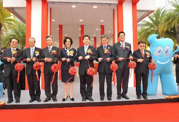 政制及內地事务局局长林瑞麟(右四)及上海世博会执委会专职副主任钟燕群(左四)今日(十二月十二日)在维多利亚公园的工展会上,主持「走进上海世博会.香港参博馆」揭幕仪式。 其他主礼嘉宾还有香港中国旅行社有限公司董事总经理周来卫(右三)、政制及內地事务局常任秘书长罗智光(左三)、政府新闻处处长黄伟纶(右二)、中央政府驻港联络办公室主任助理王如登(左二)、香港中华厂商联合会会长尹德胜(右一)及中华人民共和国国家旅游局亚洲旅游交流中心主任林山(左一)。最右为上海世博会吉祥物「海宝」。