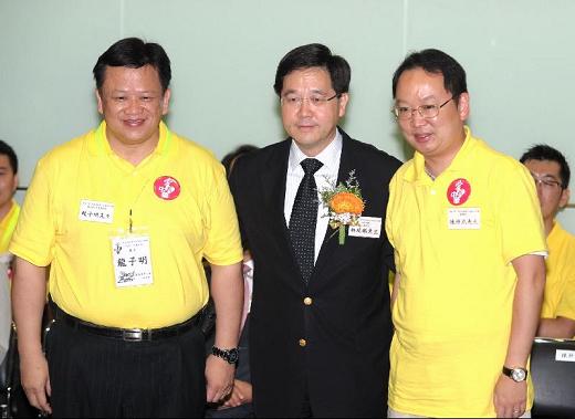 署理政务司司长林瑞麟今日(七月二十四日)为「『爱我中华』两岸四地青年大匯聚火车团」出发前往北京及寧夏进行交流活动,主持授旗礼。仪式於教育局九龙塘教育服务中心举行,有数百名来自两岸四地的学生参与。 林瑞麟讚扬社会各界人士及多个青年团体组织这项有意义的交流活动,让来自內地、香港、台湾和澳门的青少年能够透过实地考察加深对国家的认识及进一步了解两岸四地的最新发展。 林瑞麟特別提到近年港台关係的发展,包括今年两地分別成立「港台经济文化合作协进会」和「台港经济文化合作策进会」加强交流。两岸之间上月签署「两岸经济合作架构协议」(ECFA),预料亦会为区內经济带来更大的动力和更多的发展机遇。 图为林瑞麟和两名团员。