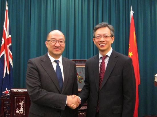 谭志源今早礼节拜会了中华人民共和国驻新西兰大使王鲁彤。