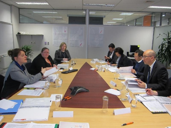 政制及内地事务局局长谭志源(右一)今日(九月二十二日)下午在新西兰威灵顿听取新西兰选举委员会经理Kristina Temel(左一)介绍新西兰的选举制度和安排。