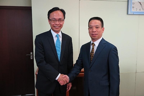 政制及内地事务局局长聂德权(左)今日(八月十六日)在北京与国务院港澳事务办公室副主任黄柳权会面。图示两人在会面前握手。