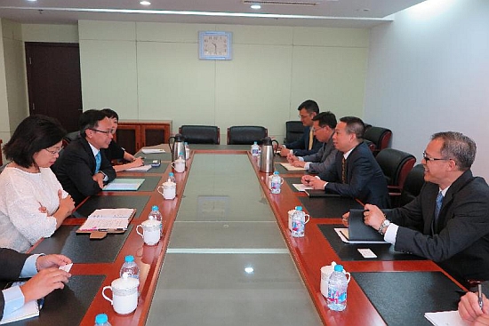 政制及内地事务局局长聂德权(左二)今日(八月十六日)在北京与国务院港澳事务办公室副主任黄柳权(右二)会面。
