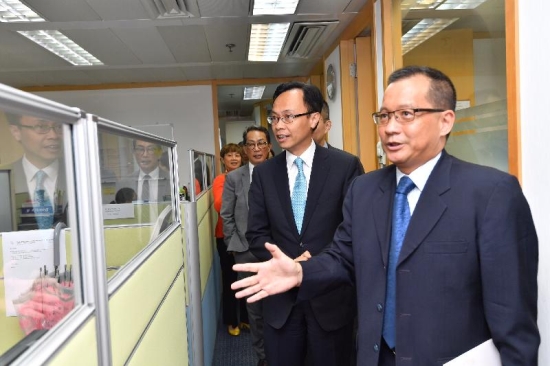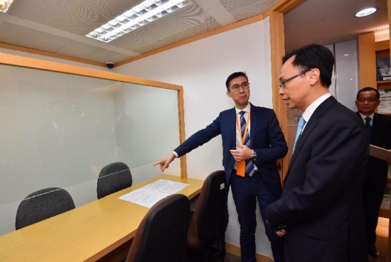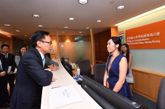 政制及内地事务局局长聂德权(右)今日(九月五日)到访个人资料私隐专员公署,并参观面谈室,了解处理投诉的程序。