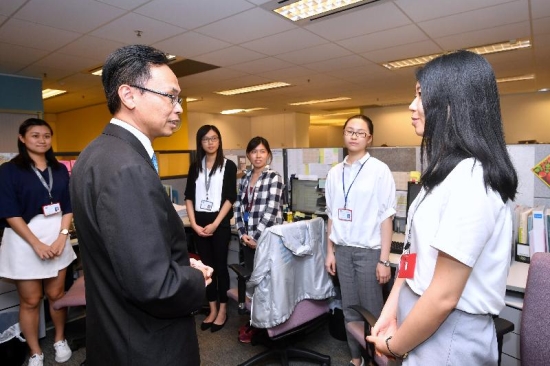政制及内地事务局局长聂德权今日(九月六日)到访平等机会委员会,并与员工交谈,了解其工作。
