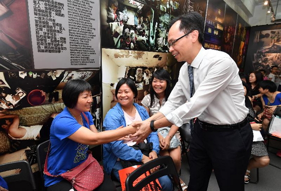 政制及内地事务局局长聂德权(右一)今日(八月二十二日)下午到访深水埗区,到协助弱势社群的社区组织与新来港人士交谈,了解他们来港后的生活和需要。
