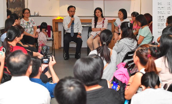 政制及内地事务局局长聂德权(后排中)今日(八月二十二日)下午到访深水埗区,与新来港人士见面,就特区政府为他们提供的服务和支援交流意见。