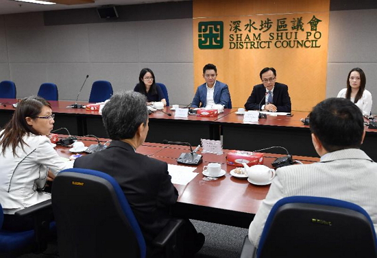 聂德权其后与深水埗区议会主席张永森和深水埗区区议员会面,就地区和社会事务交换意见。