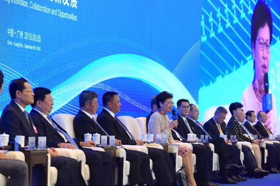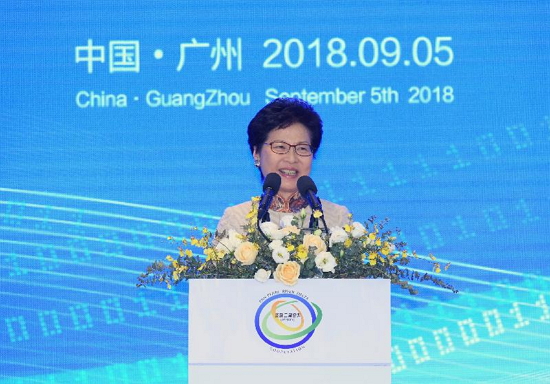 行政长官林郑月娥(右)今日(九月五日)在广州出席2018年泛珠三角区域合作行政首长联席会议。