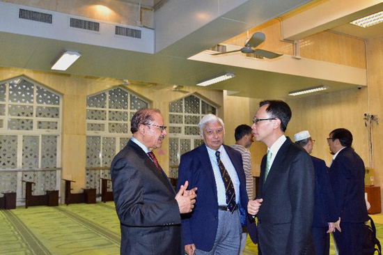 聂德权随后参观爱群清真寺暨林士德伊斯兰中心。该中心是港岛区为穆斯林而设的主要宗教和活动场所。除礼拜殿外,还设有食堂、图书馆等设施,亦是香港伊斯兰联会和香港伊斯兰青年协会的会址。
