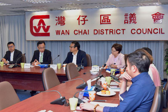 聂德权其后在湾仔民政事务专员陈天柱陪同下,与湾仔区议会主席吴锦津和区议员会面,就地区和社会事务交换意见。