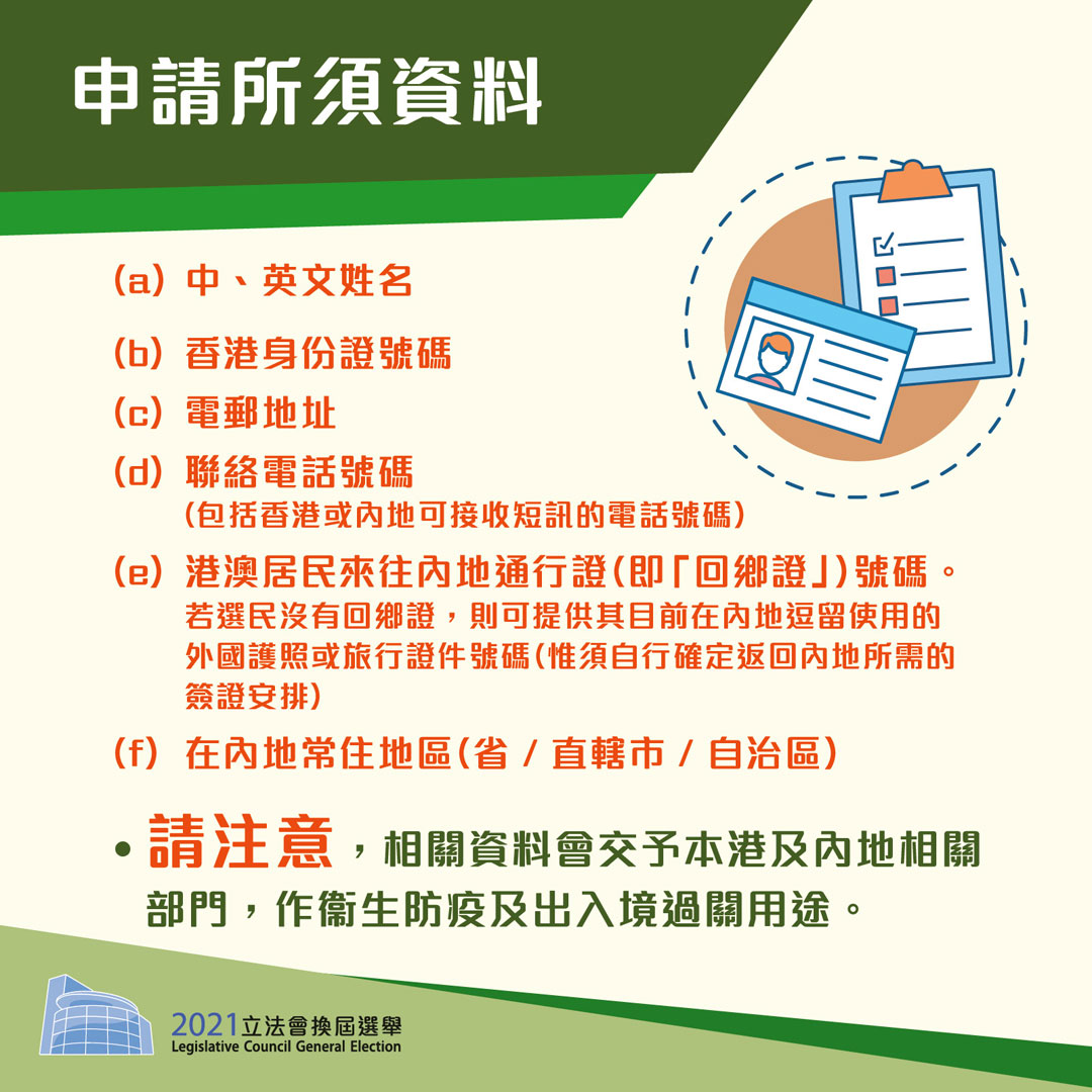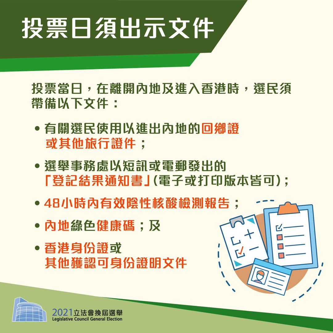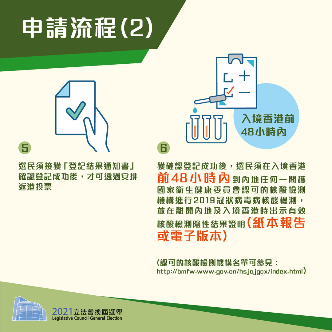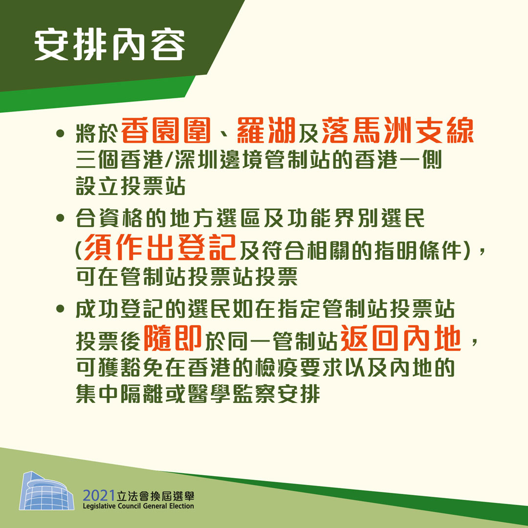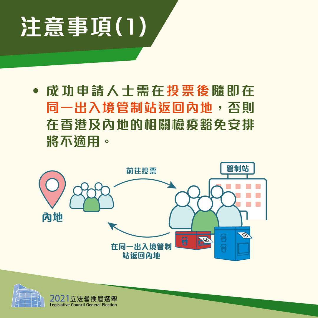 Infographics on "2021 Legislative Council General Election - arrangement for electors to return from Mainland to Hong Kong to vote" (Chinese only)
