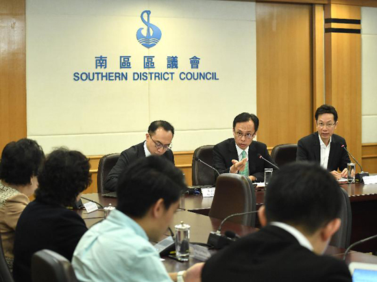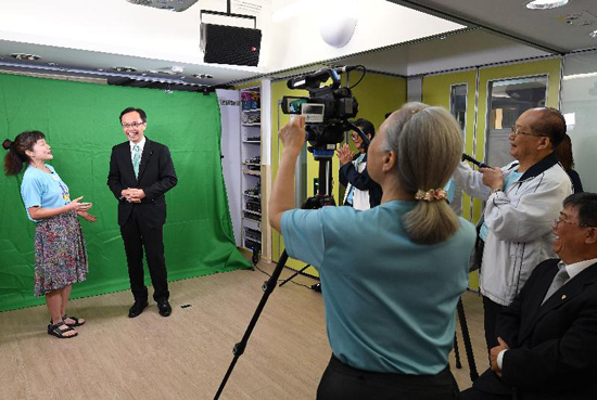政制及内地事务局局长聂德权(前左)今日(九月二十六日)上午到访南区一间特殊学校,参观学校为学生提供的辅助设施。