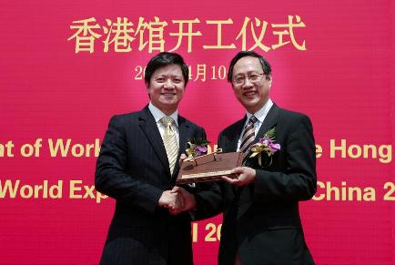 二○一○年世博香港馆动工兴建(四) 香港特別行政区驻上海经济贸易办事处主任陈子敬(左)及上海世博会事务协调局副局长黄健之在中国2010年上海世界博览会香港馆开工仪式上合照。