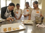 政制及內地事务局局长到访屯门一中学(二) 政制及內地事务局局长林瑞麟今日(五月二十六日)下午到访明爱屯门马登基金中学,了解学生的校园生活及学习情况。图示林瑞麟参观中一级家政课,与正在製作曲奇饼的同学们交谈。