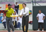 政制及內地事务局局长到访屯门一中学(五) 林瑞麟参与明爱屯门马登基金中学的板球训练。
