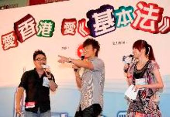 爱香港‧爱《基本法》同乐日(一) 政制及內地事务局今日(九月十二日)下午在屯门市广场举办「爱香港‧爱《基本法》同乐日」,节目內容资讯与娱乐並重。图示歌手方力申以轻鬆手法介绍《基本法》內容。