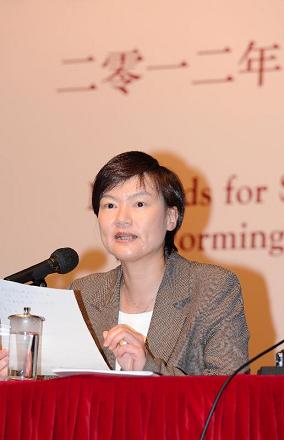 署理政制及內地事务局局长出席二○一二年行政长官及立法会產生办法公开论坛(二) 黄静文向与会人士简介諮询文件。 |