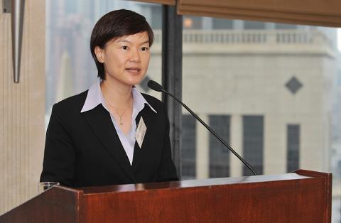 政制及內地事务局副局长出席政制发展研討午餐会(二) 黄静文向与会人士简介諮询文件。 |