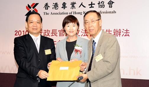 政制及內地事务局副局长出席政制发展研討午餐会(二) 黄静文接收香港专业人士协会代表的意见书。 |