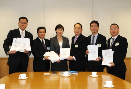 政制及內地事务局副局长与青年团体会面(一) 政制及內地事务局副局长黄静文今日(二月十一日)下午分別与香港青年联会、香港菁英会及香港青年交流会促进联会的代表会面。图示黄静文接收有关团体代表的意见书。