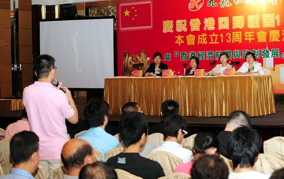 政制及內地事务局副局长出席「香港经济前瞻与政制发展」研討会(一) 政制及內地事务局副局长黄静文今日(六月十三日)出席由九龙社团联会举办的「香港经济前瞻与政制发展」研討会,討论《二零一二年行政长官及立法会產生办法建议方案》。图为黄静文於会上。