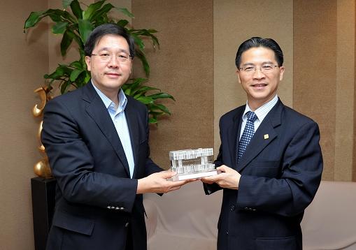 政制及內地事务局局长继续访问上海(四) 图示林瑞麟向上海市政协副主席、中国2010年上海世博会执委会副主任周汉民(右)致送纪念品。