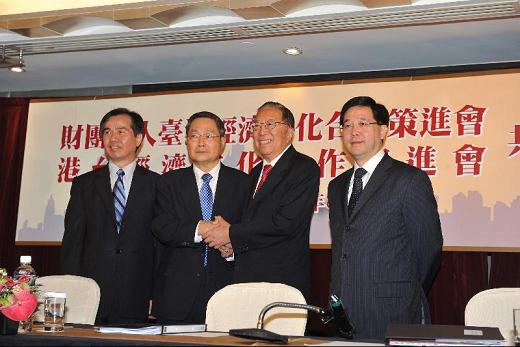 「港台经济文化合作协进会」(「协进会」)及「台港经济文化合作策进会」今日在台湾举行第一次联席会议。以下分別为「协进会」主席李业广和政制及內地事务局局长林瑞麟以「协进会」常务副主席的身分在会议后的记者会上的发言和回应传媒提问的谈话內容(中文部分): 港台经济文化合作协进会主席: 林(振国)董事长、高(长)副董事长、各位记者,你们好。 在过去两年,配合两岸关係和平发展的新契机,香港和台湾均积极提升两地的交流。除了推出多项促进两地交流的措施以外,更分別成立「港台经济文化合作协进会」和「台港经济文化合作策进会」这两个新的沟通平台,为香港和台湾长远的关係发展和合作,谱出新的篇章。 今天,两会能本着互惠互利的原则,在台北举行第一次联席会议,就港台都关切的实务事宜进行研究和討论,实在是港台关係发展的一个歷史时刻。 在今天的联席会议中,双方透过两会这新平台,加深相互了解,共同参与並推动两地的经贸、投资、金融、文化、交通、科技、衞生、教育和其他相关事项的推广、交流与合作。对於港台双方均秉持善意与诚意,为建构港台持续发展的良性互动而努力,我感到非常高兴。 今天,两会订定了未来香港与台湾的合作范畴。我希望双方能继续努力,进一步加强两地之间各方面的合作。 记者:刚才提到七个要点,其中免双重徵税或未来免签证的问题,最快可以在甚么时候落实?是不是要等到明年可能林董事长到香港访问后才会落实?最快是甚么时候? 政制及內地事务局局长:关於税务的问题,双方的专业部门都有参与今天的会议,並认为这对今后经济发展、对香港与台湾之间的合作都是重要的,所以我们的专业部门现在就会开始跟进,也不需要等待到明年再开会。我们希望按照香港与台湾的法律,能妥善地处理这个问题,也尽快爭取有进度。 关於免签证的问题,台湾方面当然已经提出一段时间,在香港方面,我们现在已经有一套安排,持有《台湾居民来往大陆通行证》(台胞证)的台湾居民,他们可以隨时来香港游览、访问一星期。我们也希望现在的 iPermit 这套安排可以继续地推而广之。至於免签的问题,港方会跟进和研究。 记者:... 政制及內地事务局局长:正如林董事长刚才说,香港在台湾已有一个正式的办事处,就是香港贸易发展局在二○○八年十月在台北成立的办事处。我们今天非常高兴台方欢迎香港旅游发展局在台北正式成立办事处,如果这能办成,就会有两个了。在去年十月,行政长官的《施政报告》也提到,港方希望考虑在適当的时间以適当的形式在台湾成立综合性办事处。这事我们会和台方继续跟进和商量。 (请同时参阅谈话內容的英文部分。) 完 2010年8月30日(星期一)