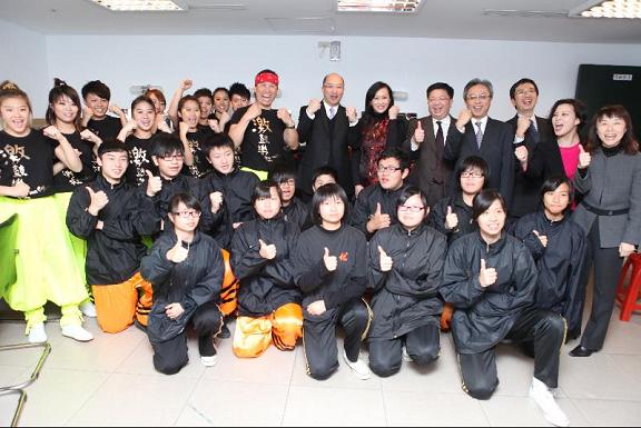 政制及內地事务局局长出席中台湾元宵灯会(一) 政制及內地事务局局长谭志源今日(二月三日)在台中市出席「2012中台湾元宵灯会」开幕式。图示谭志源(后排右七)、香港旅游发展局总干事刘镇汉(后排右五)、政制及內地事务局常任秘书长罗智光(后排右四)及香港的表演者,包括香港激鼓乐社及去年「全港公开龙狮艺锦標赛」冠军龙狮团在后台合照。