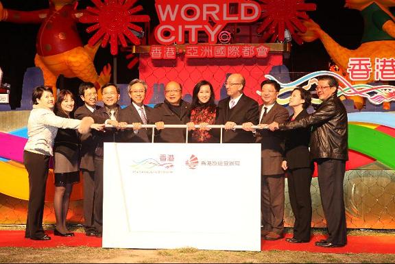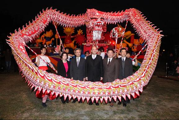 政制及內地事务局局长出席中台湾元宵灯会(三) 谭志源(左八)今日(二月三日)与台中市市长胡志强(左六)、刘镇汉(左九)、罗智光(左五)及其他嘉宾主持香港灯区点灯仪式。 |