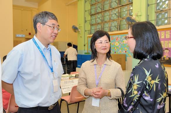 政制及內地事务局常任秘书长巡视湾仔投票站 政制及內地事务局常任秘书长张琼瑶(左二)今日(九月九日)上午巡视湾仔轩尼诗道官立小学投票站,並与工作人员交谈。