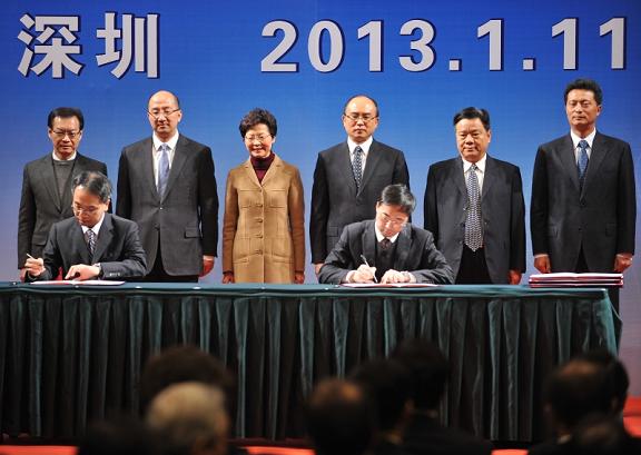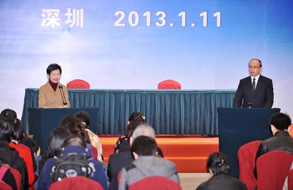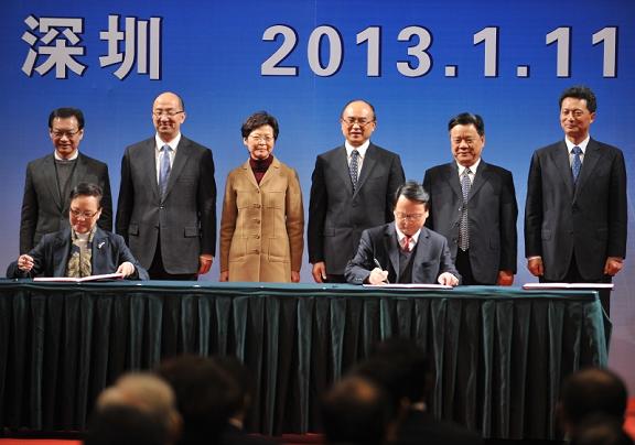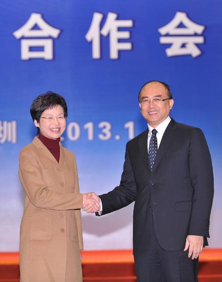 *《关於共同推进深港青年创新创业基地建设合作协议》 合作协议的主要內容见附件。 陪同政务司司长出席会议的其他官员包括政制及內地事务局局长谭志源、政制及內地事务局常任秘书长张琼瑶、环境局常任秘书长王倩仪、发展局常任秘书长(工务)韦志成、劳工及福利局常任秘书长谭赣兰、中央政策组首席顾问邵善波、財经事务及库务局副局长梁凤仪、运输及房屋局副局长邱诚武、保安局副局长李家超、政制及內地事务局副局长刘江华。 完 2013年1月11日(星期五)