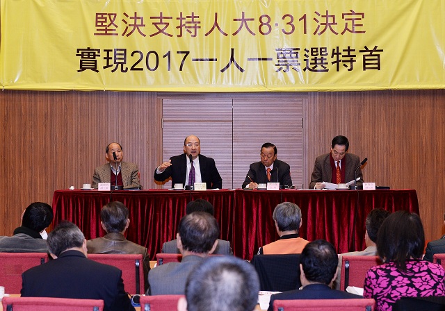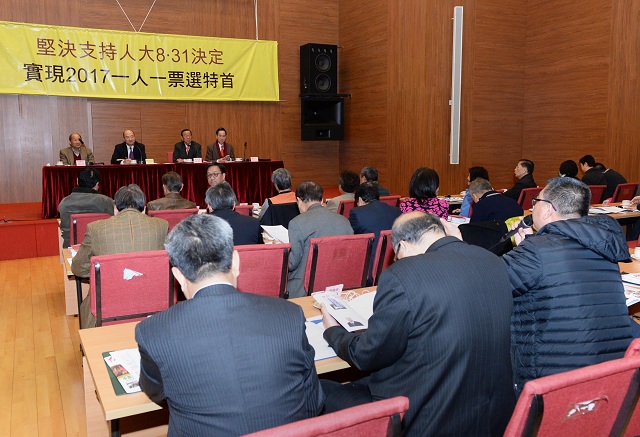 政制及內地事务局局长出席新界乡议局会议简介諮询文件(一) 政制及內地事务局局长谭志源(左二)今日(二月十日)下午出席新界乡议局会议,在会上简介《行政长官普选办法諮询文件》。