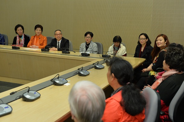 政制及內地事务局副局长与九龙妇女联会就政制发展会面(一) 政制及內地事务局副局长刘江华(左三)今日(三月二日)下午与九龙妇女联会代表会面,並聆听他们就《行政长官普选办法諮询文件》的意见。
