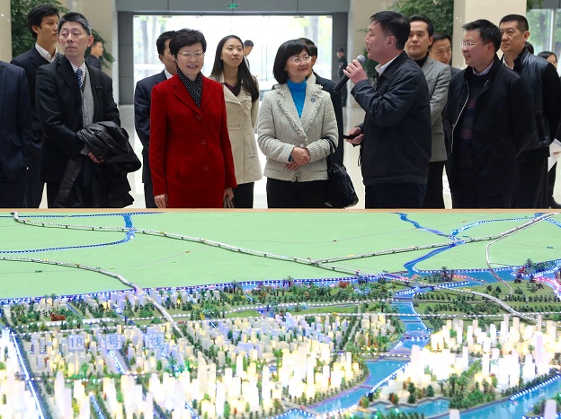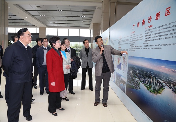 政务司司长到南沙新区考察(二) 林郑月娥(前排左二)听取有关该区发展的介绍。 |