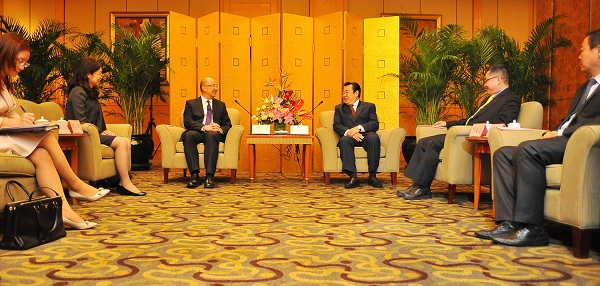 香港特区政府驻辽寧联络处揭牌(一) 政制及內地事务局局长谭志源(左三)今日(四月二十七日)在瀋阳市与辽寧省副省长邴志刚(右三)会面。