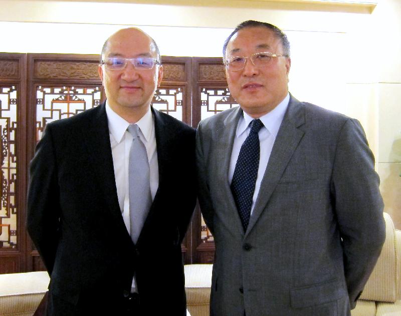 谭志源今日上午在北京与国务院港澳事务办公室副主任王志民会面,讨论双方共同关心的事宜。