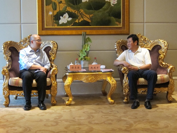 政制及內地事务局局长谭志源(左)今日(七月三十日)早上与河南省副省长赵建才会面,就豫港合作交换意见。郑州市副市长薜云伟亦有出席会晤。