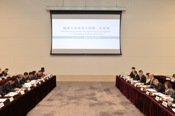 政制及内地事务局局长谭志源今日(十二月十七日)率领港方代表团,与广州市副市长蔡朝林率领的穗方代表团在香港进行穗港合作专责小组第三次会议。