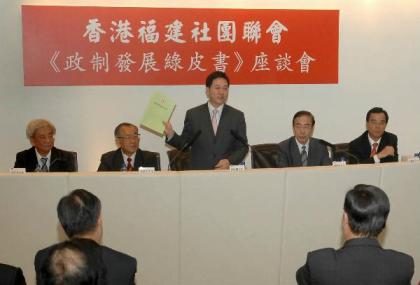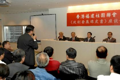 政制及內地事務局局長出席香港福建社團聯會座談會 (二) 政制及內地事務局局長林瑞麟今日(九月三日)下午出席香港福建社團聯會舉辦的座談會,向與會者介紹《政制發展綠皮書》,聽取他們的意見,並回答問題。圖示林瑞麟攝於座談會。